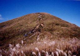 背丈ほどあるススキの穂をかき分けながら登ってきました。
