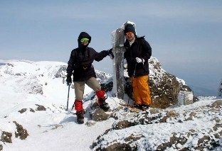 9時45分山頂に。風は冷たいが空は晴れ渡り、360度の展望を満喫。