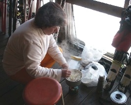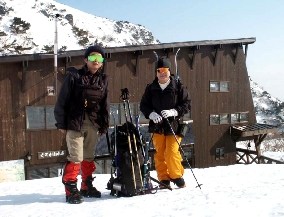 食堂に入り、荷物を降ろしているとpoohさんが「スキーが1本しかない」。